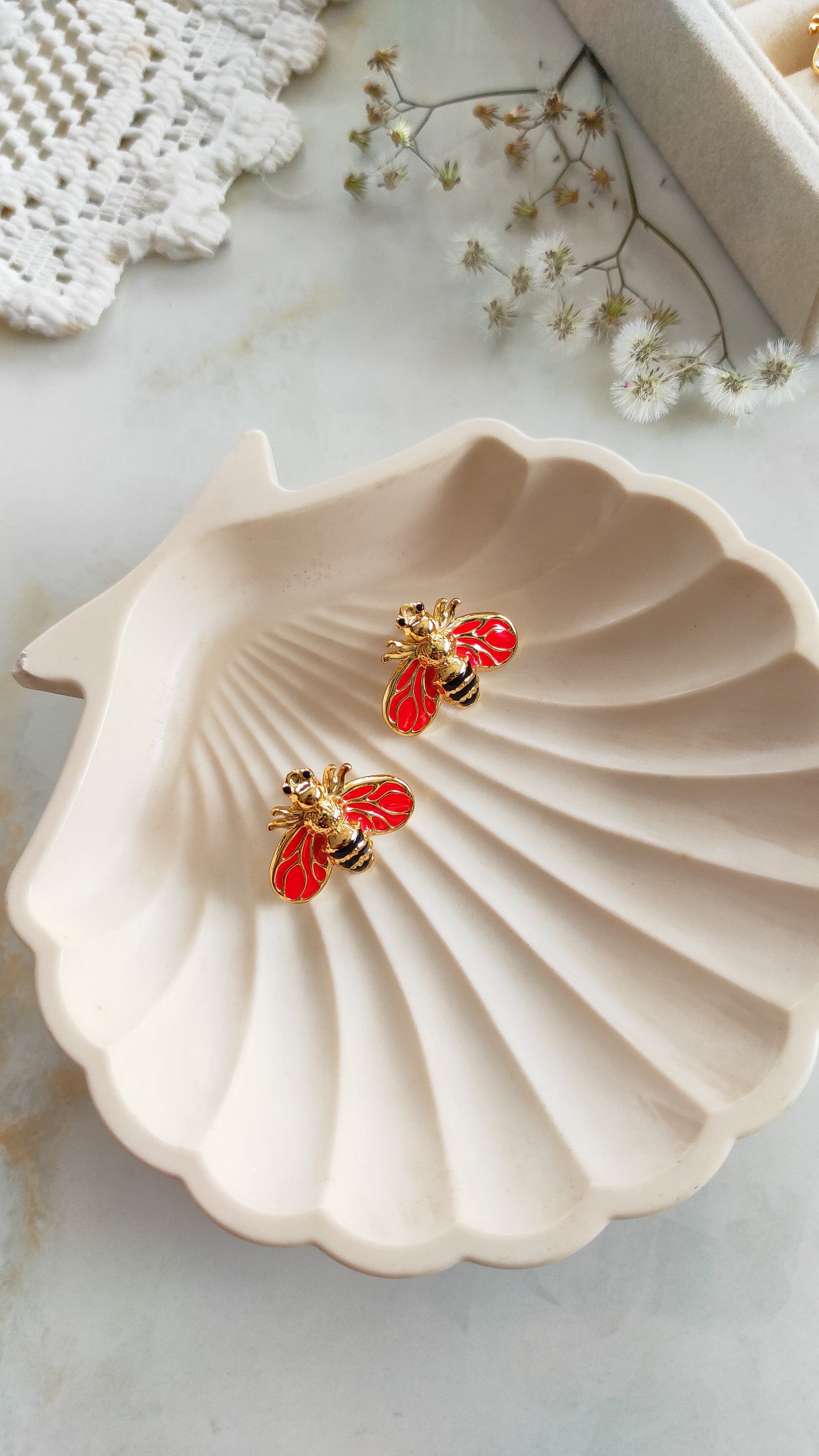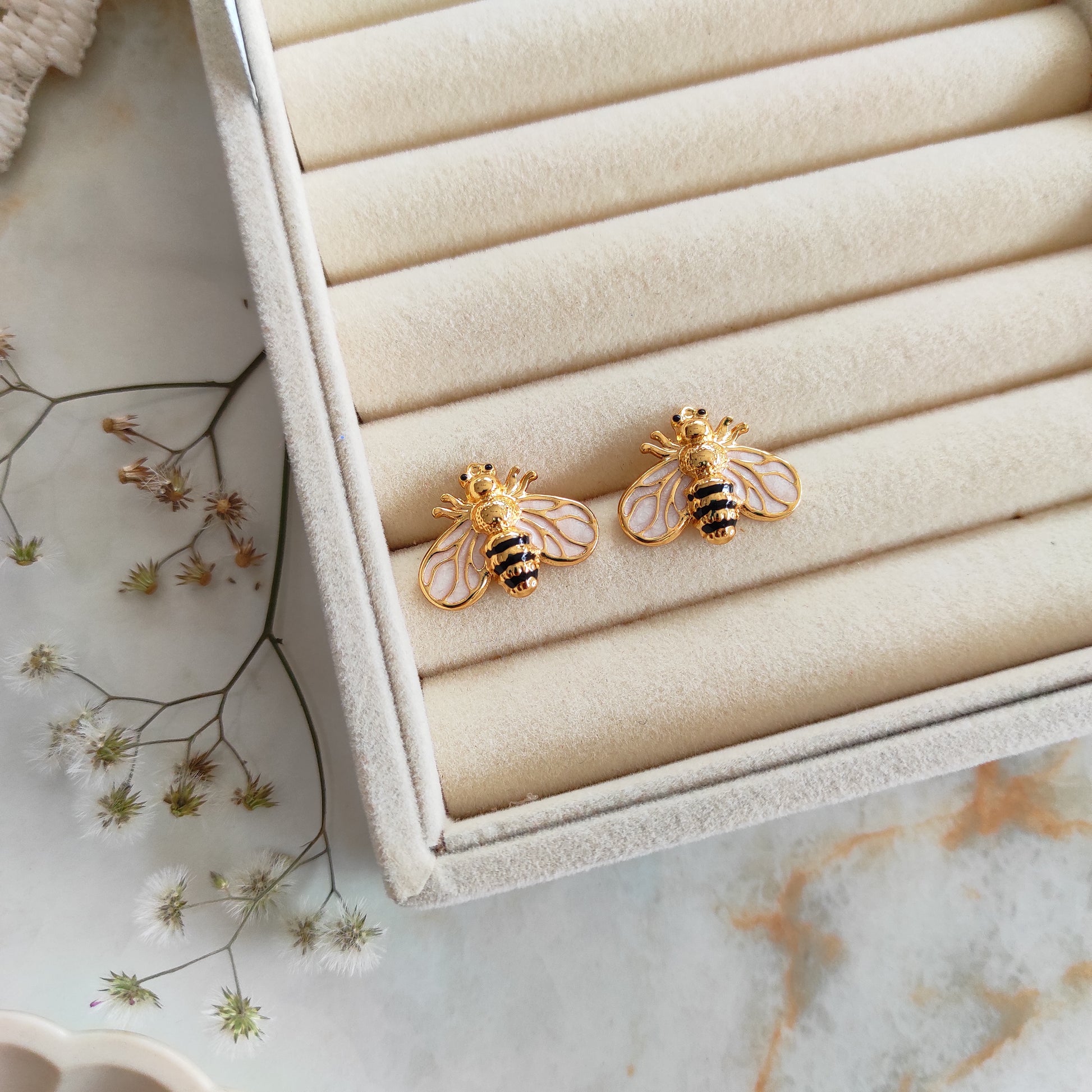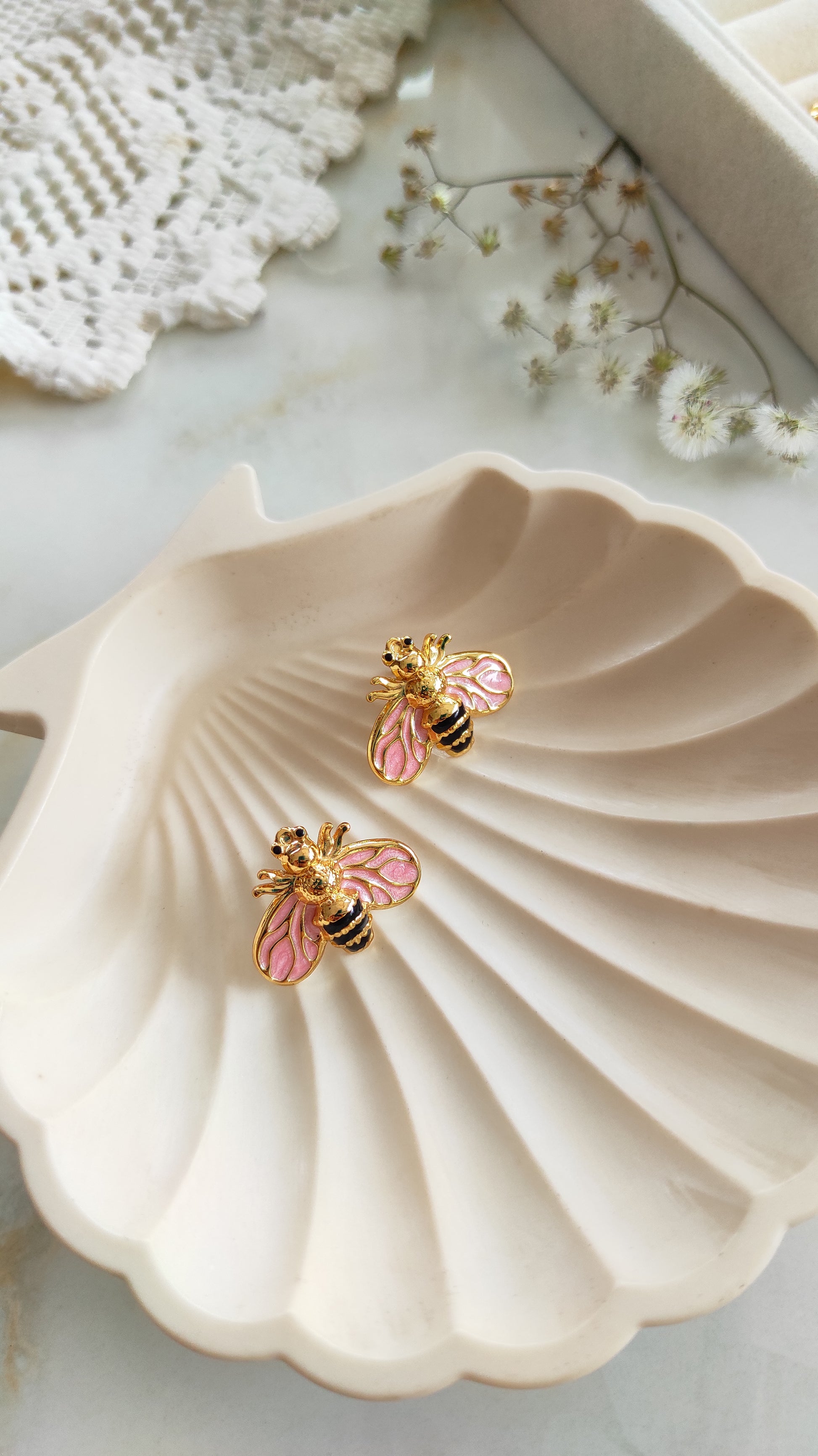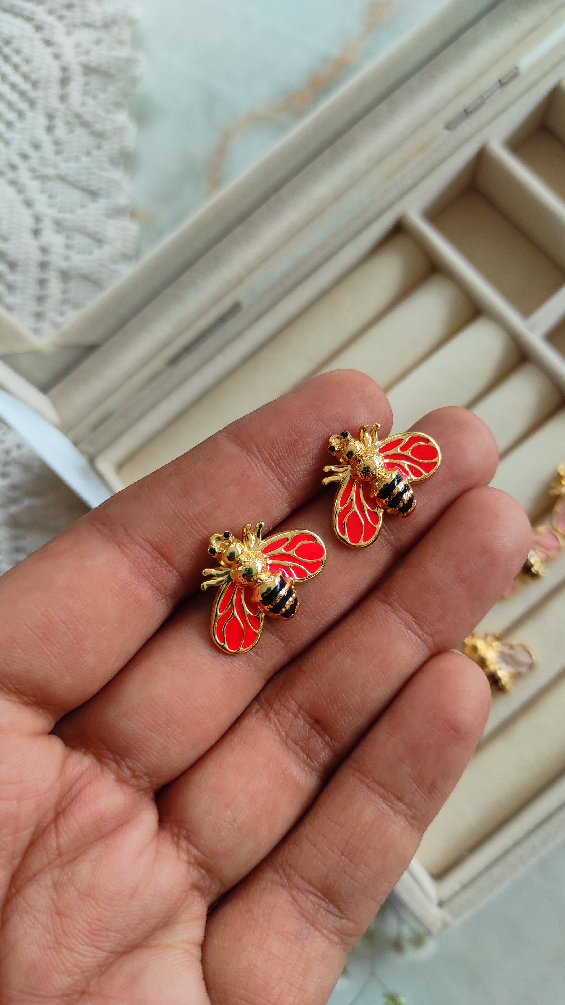 Enameled bee earrings