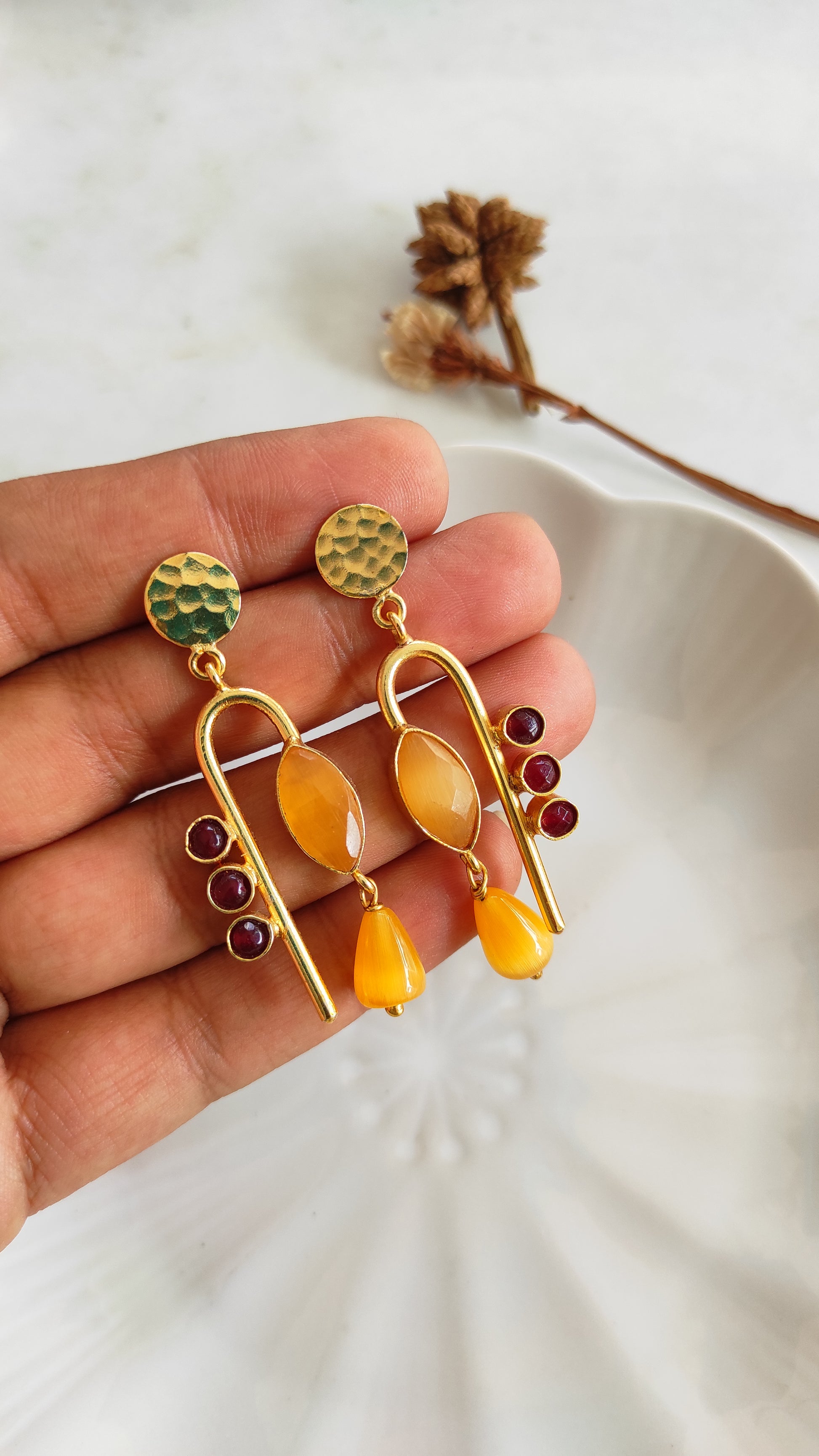 Golden handmade brass earrings