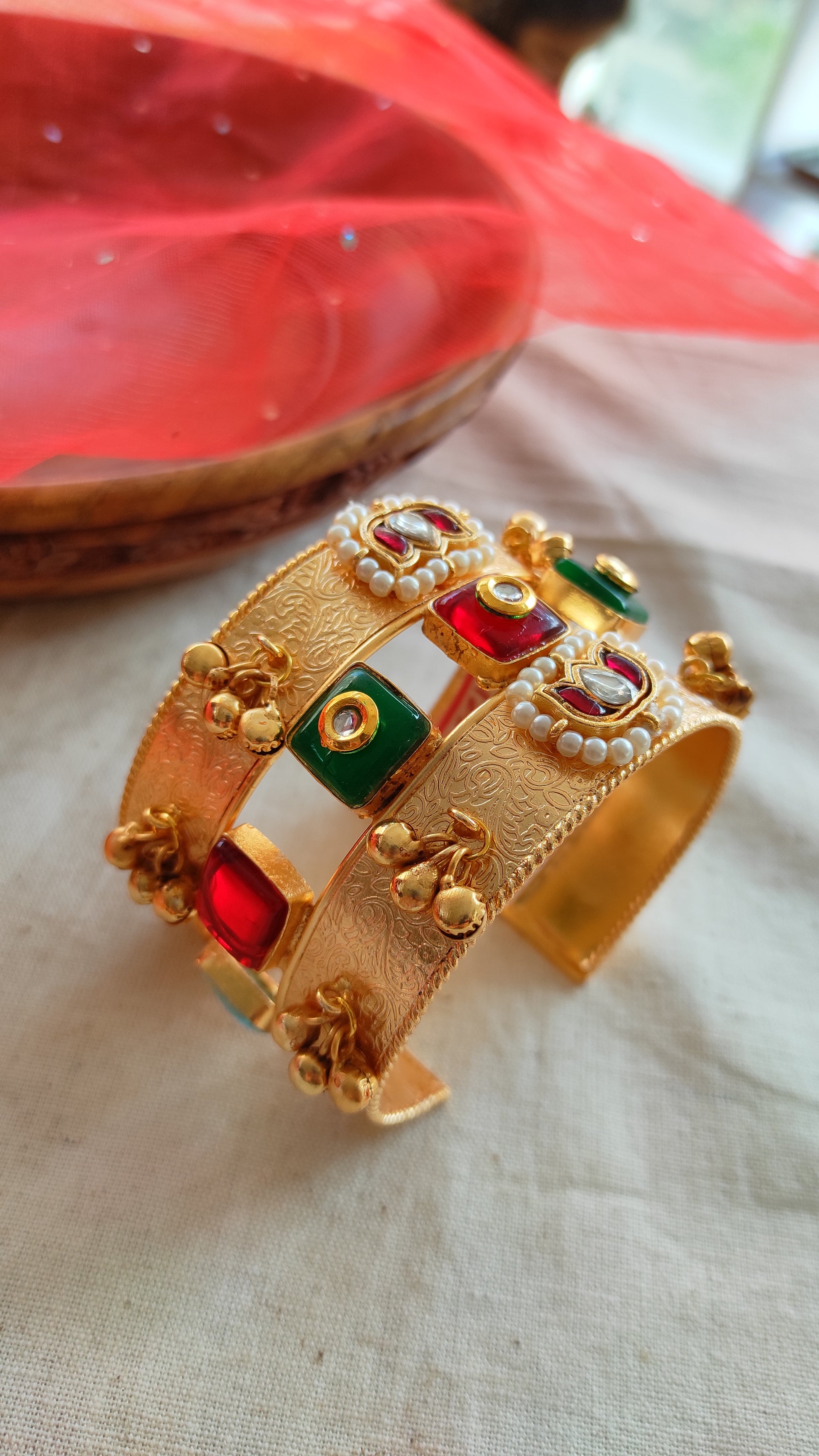 Pratigya kundan kada with ghunghru openable cuff bracelet