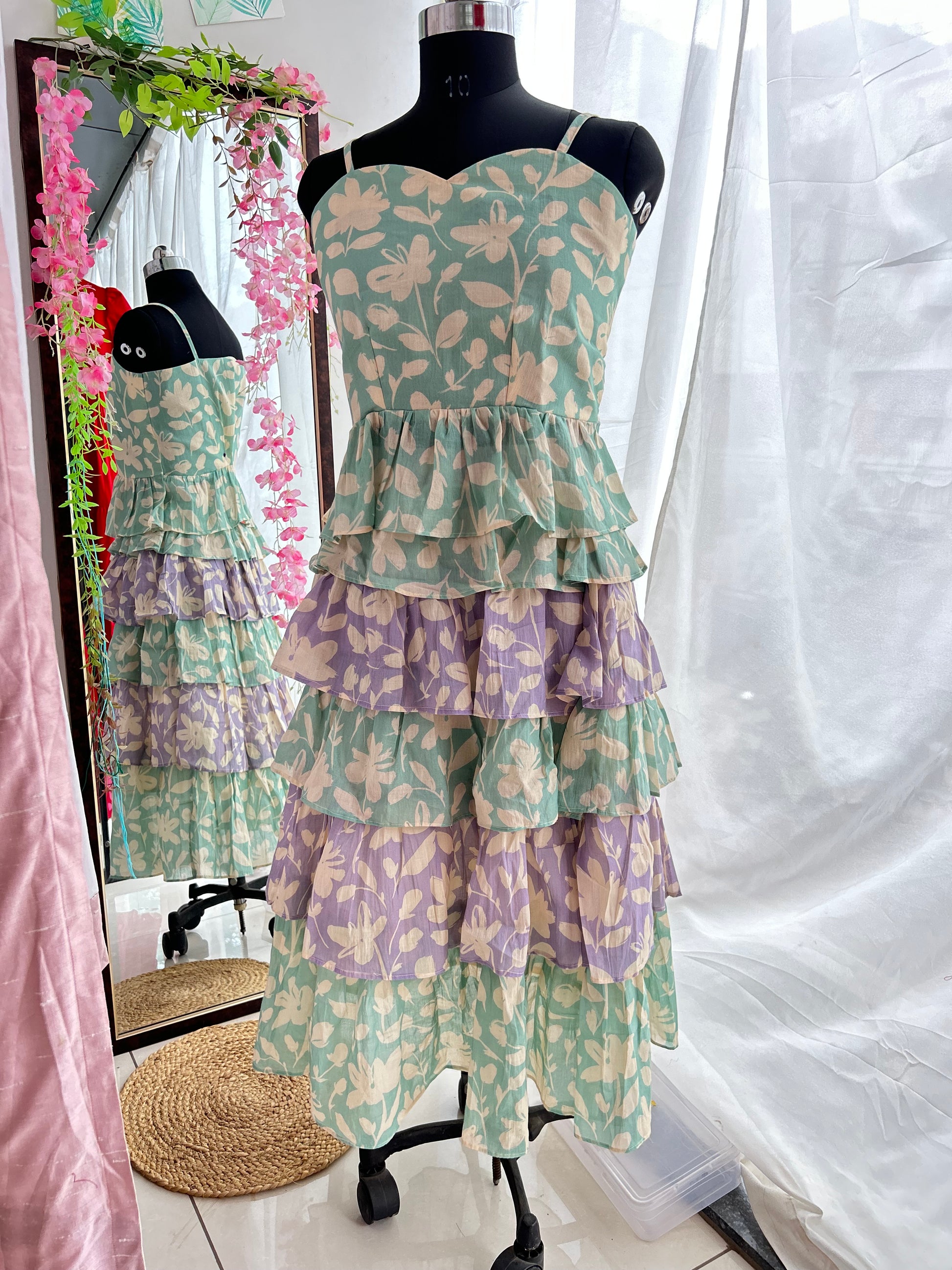 - Top is Spaghetti Top with little frill at the hem blending it to Skirt.