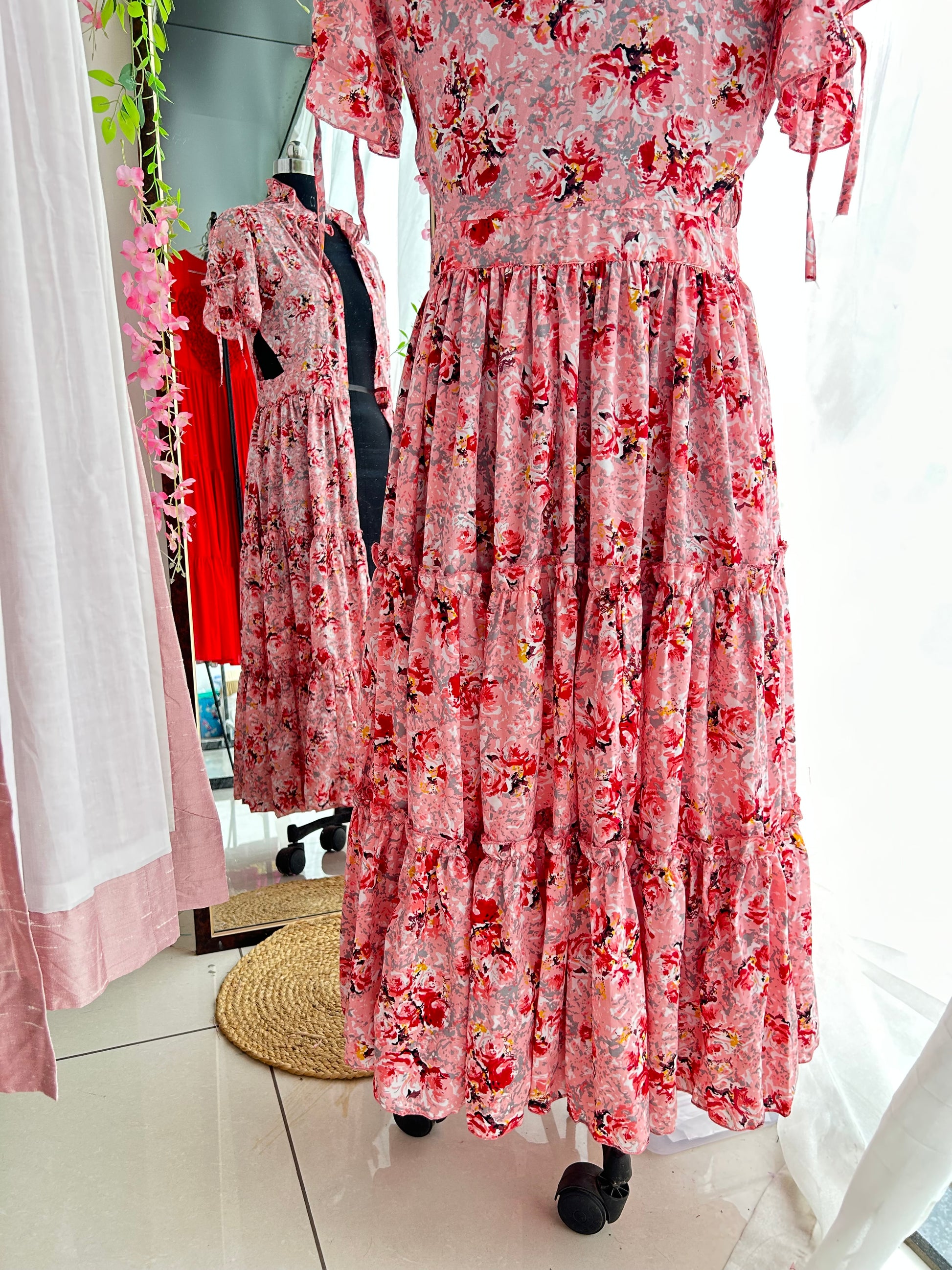 It's Comfortable and flary , multi tiered cotton Blend Shirt Dress, with waist cutout. Looks beautiful as overlay.