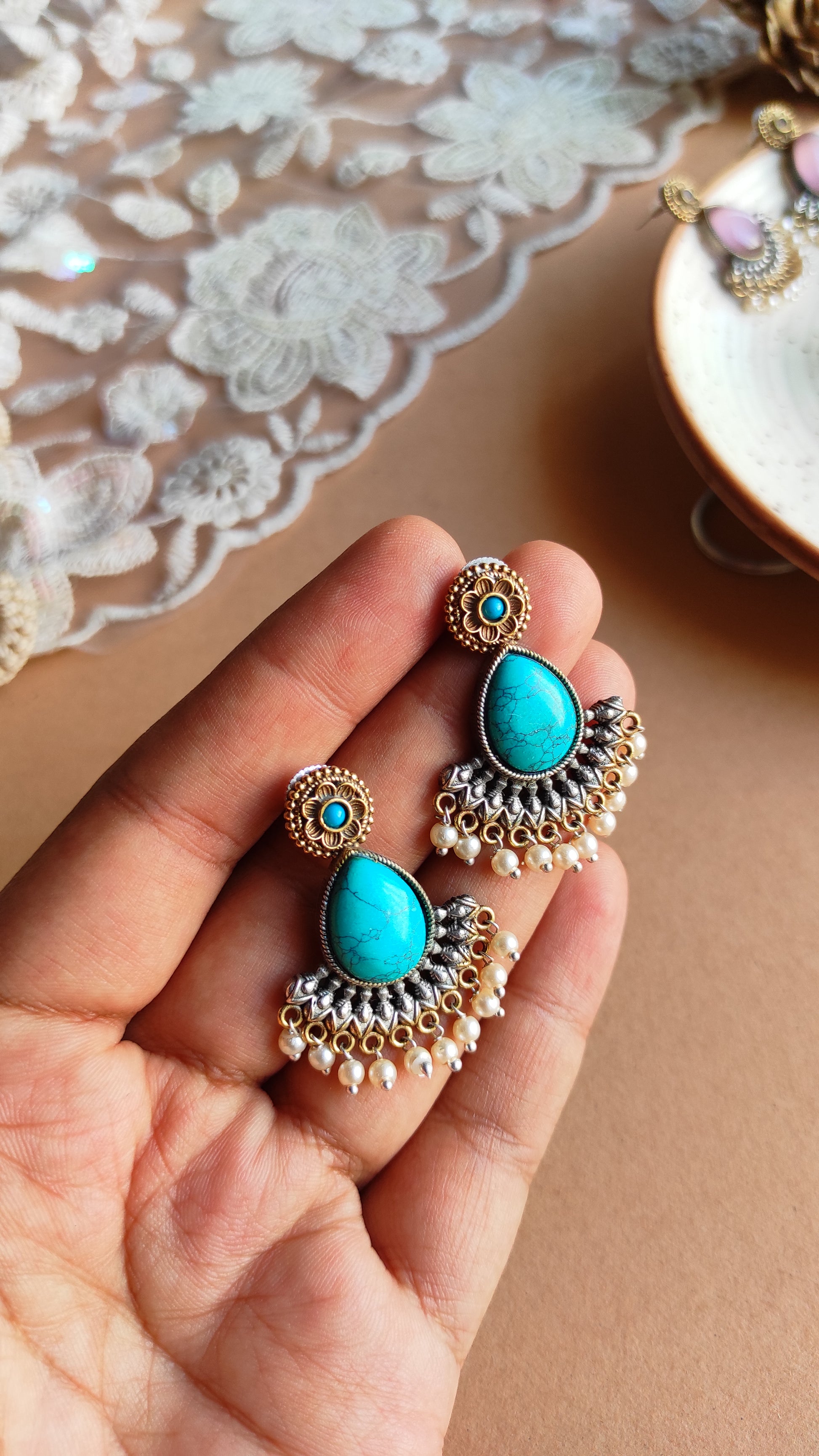 Simple, elegant and versatile studs with vibrant colors stones, and best part - tiny hanging pearls ❤